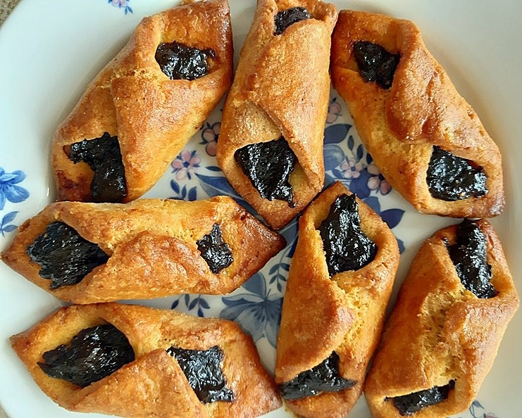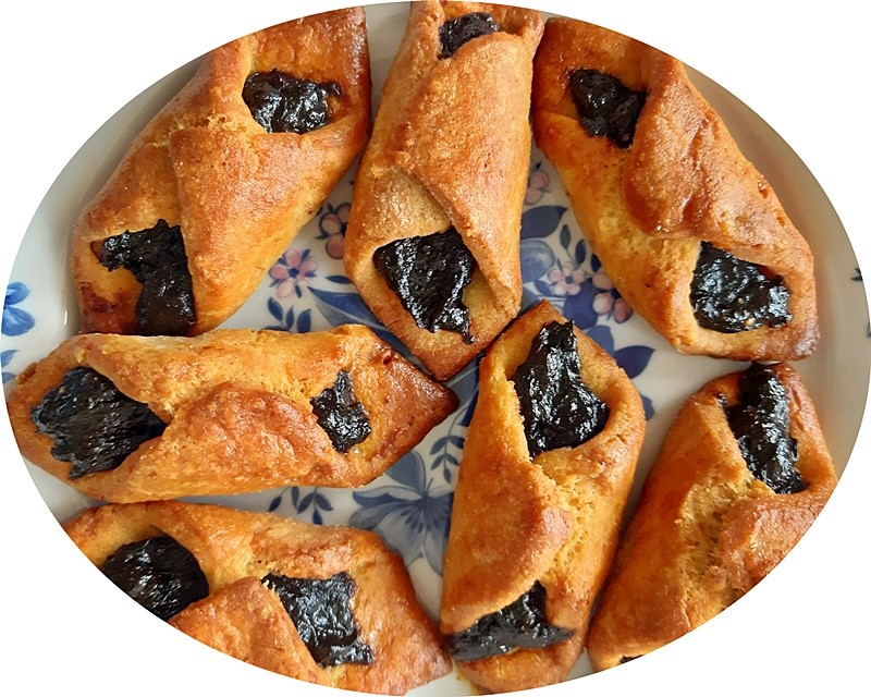 A lisztet összekevertem az élesztővel, szódabikarbónával és a sóval, majd összegyúrtam a többi alapanyaggal. Letakarva szobahőmérsékleten kb. 30-35 percet pihentettem. Ezután lisztezett táblán ½ cm vastagra nyújtottam, 5×5 cm-es kockákra felvágtam, megtöltöttem szilvalekvárral, és a két sarkát egymásra sodortam. Sütőpapírral bélelt tepsibe sorakoztattam, és megkentem pici vízzel elkevert tojássárgájával. Előmelegített 180 fokos sütőben 20 perc alatt megsültek.
